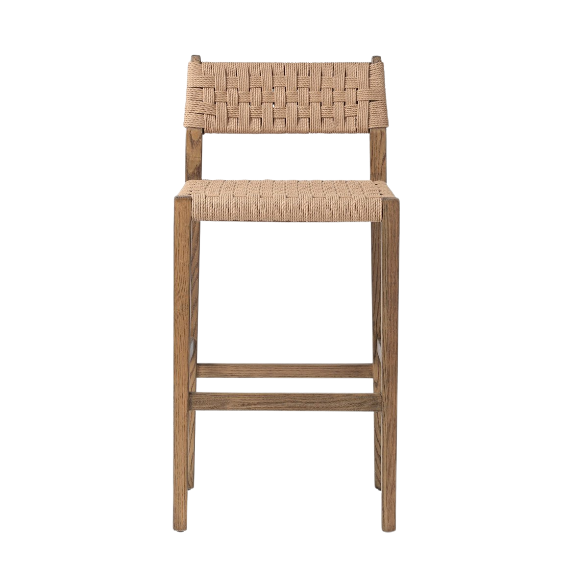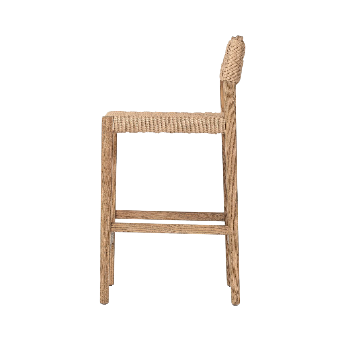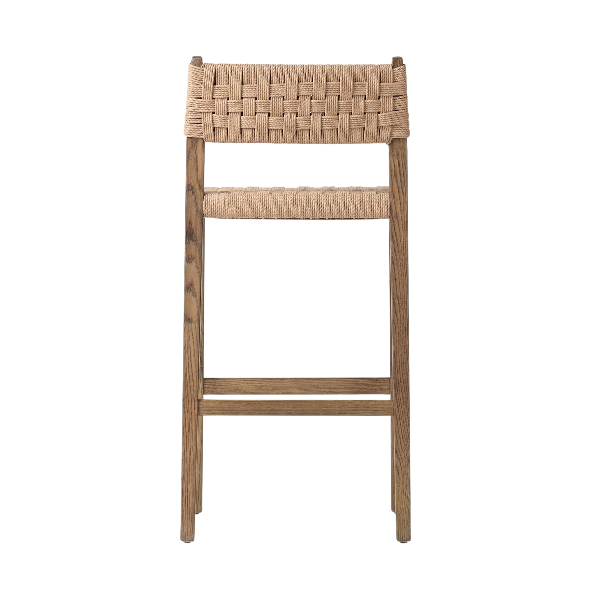 The Clara Bar + Counter Stool features a tapered oak frame paired with a woven double twisted paper cord back and seat, blending natural wood tones with subtle texture. Its clean lines and neutral palette offer a refined yet approachable aesthetic, making it an ideal choice for both bar and counter seating that balances durability with sophisticated design.