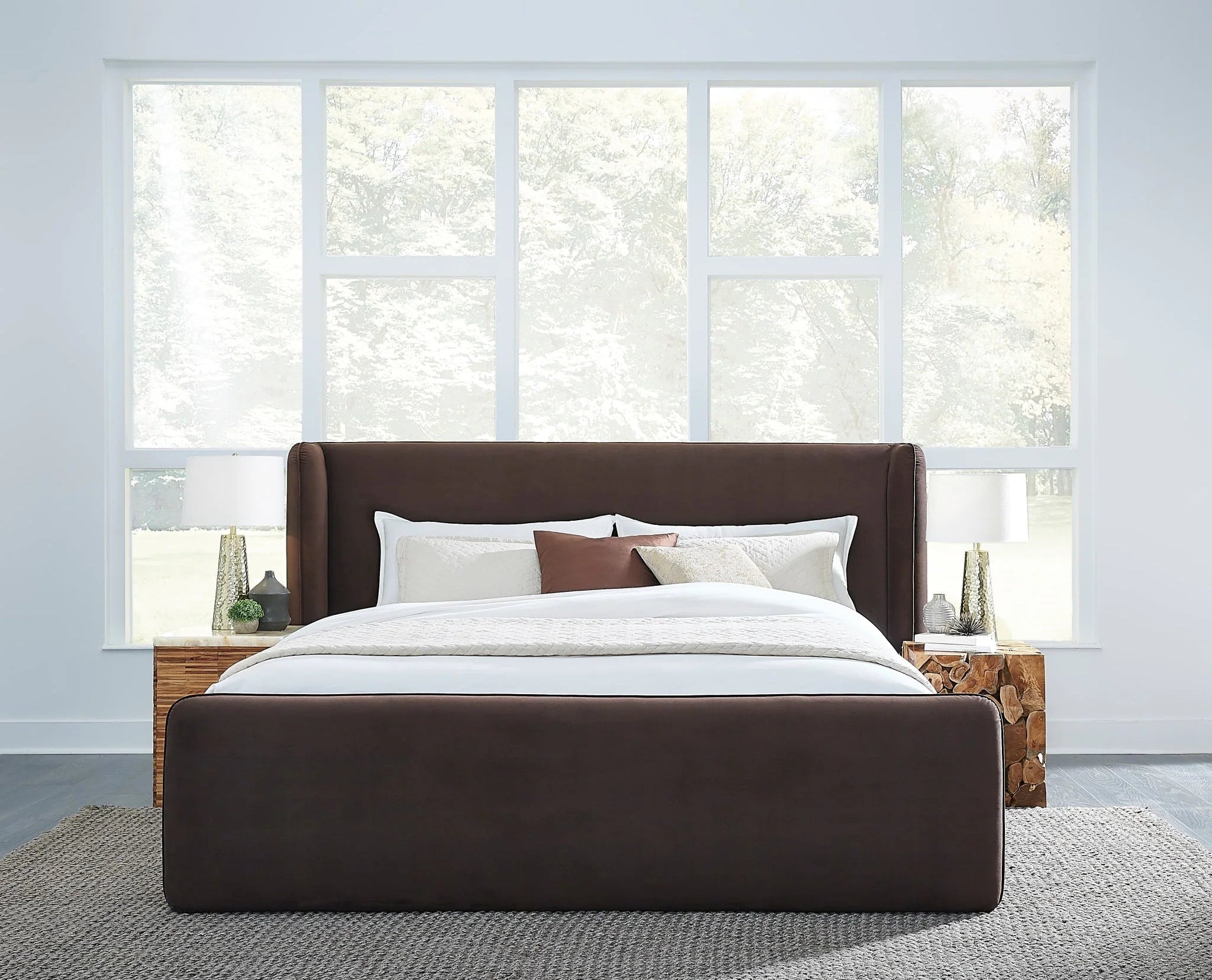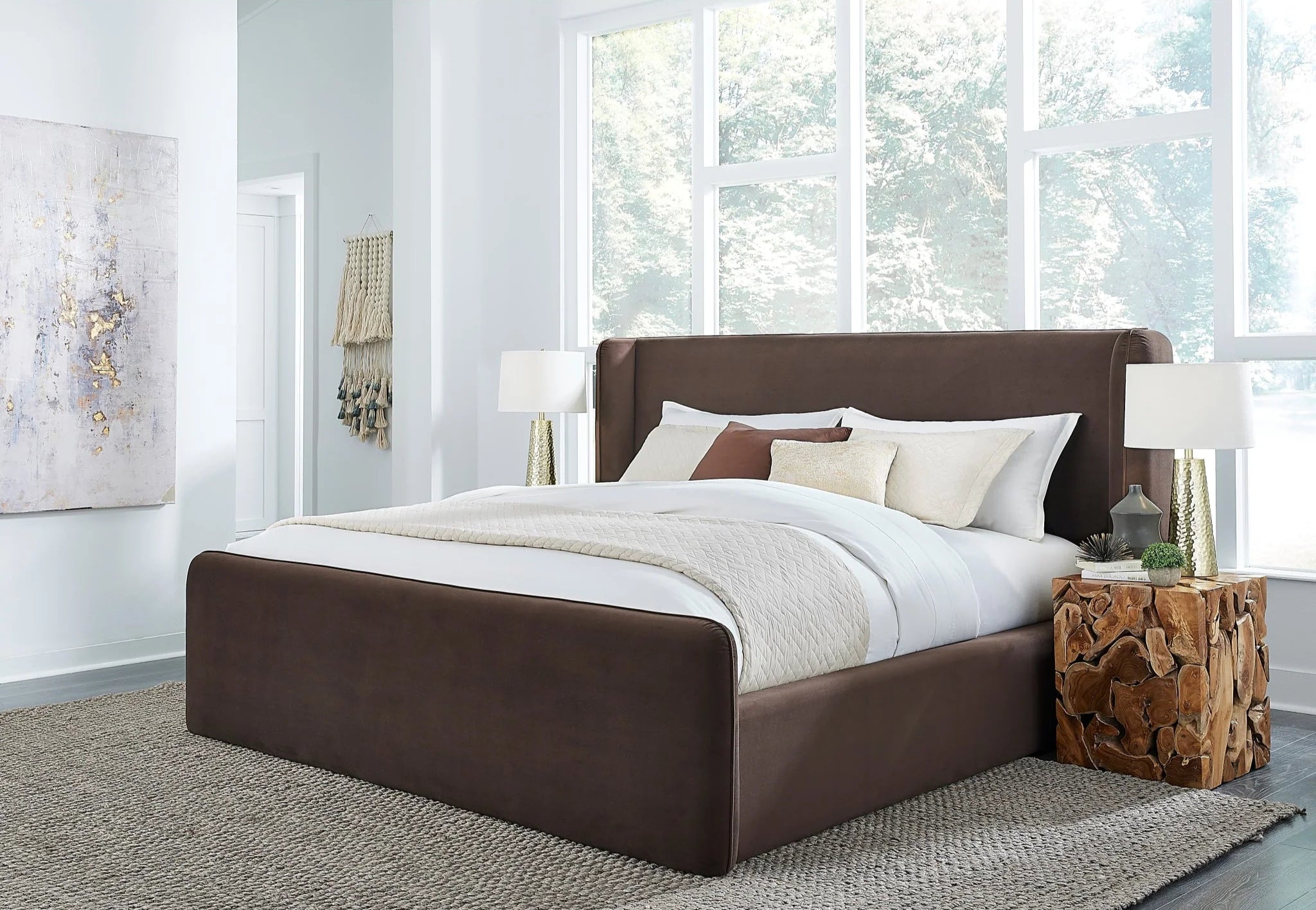 Bacall Velvet Upholstered Wingback Platform Bed | Cola