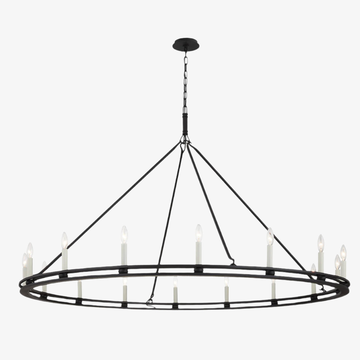 Dual concentric rings create the distinctive circular profile of this exquisite chandelier. The perimeter-mounted candlestick fixtures deliver generous, radiant illumination throughout your space. The Sutton's architectural presence combines sophisticated design with exceptional functionality, making it an ideal centerpiece for refined interiors.
