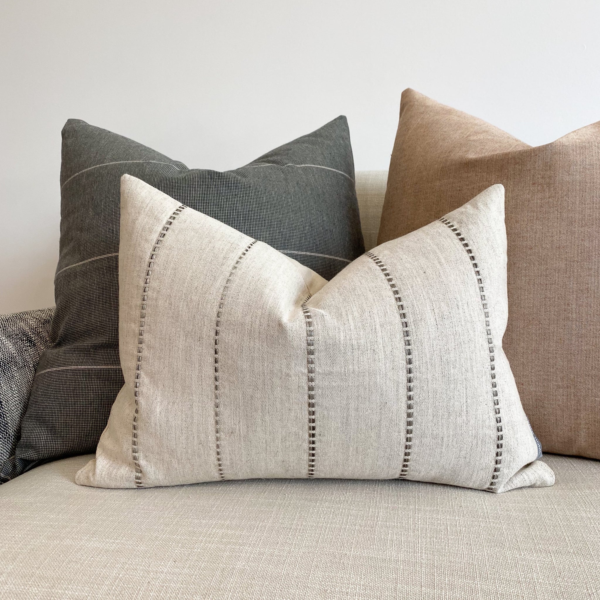Embroidered Stripe | Gray Pillow Cover