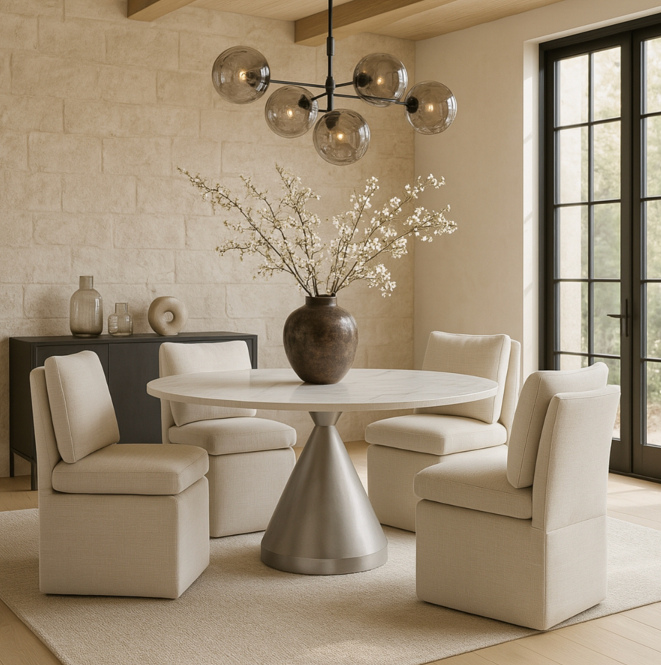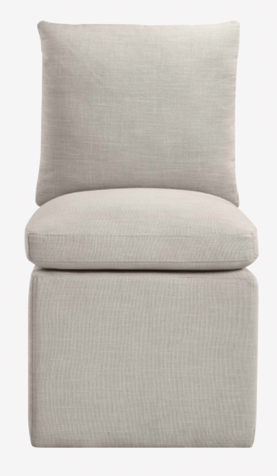 Casual elegance defines the Nelori beige linen textured performance fabric upholstered dining chair, making it a versatile choice for any table. Its plush cushioning and solid wood inner frame promise comfort and lasting support. With clean contemporary lines, it delivers a relaxed yet refined presence to your dining space.