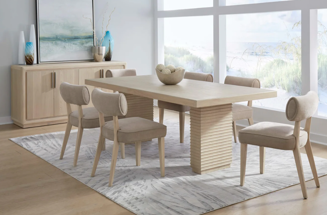 - Wood surfaces are lightly wire brushed to create a soft, tactile open grain texture