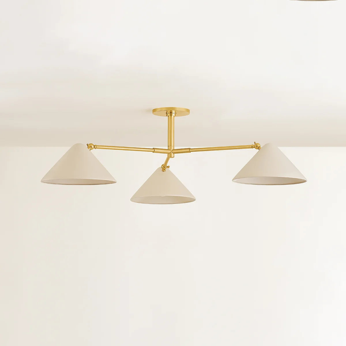 Mid-century themes meet modern design simplicity in the Sonja family. The rounded tops, rolled edges, and Soft Bisque finish of the shades make for approachable geometric fixtures with many applications.