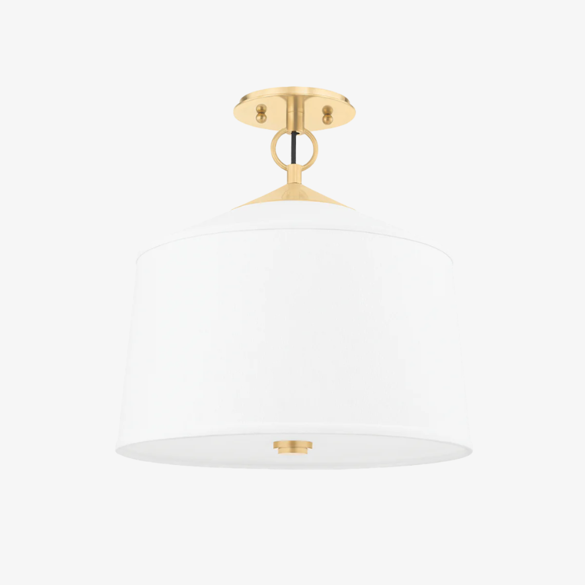 A classic shape with luxury details, White Plains is the perfect piece for transitional interiors. The clean, crisp white linen shade blends beautifully with the sleek solid brass metalwork and natural wrapped rattan for a look that is warm yet modern.