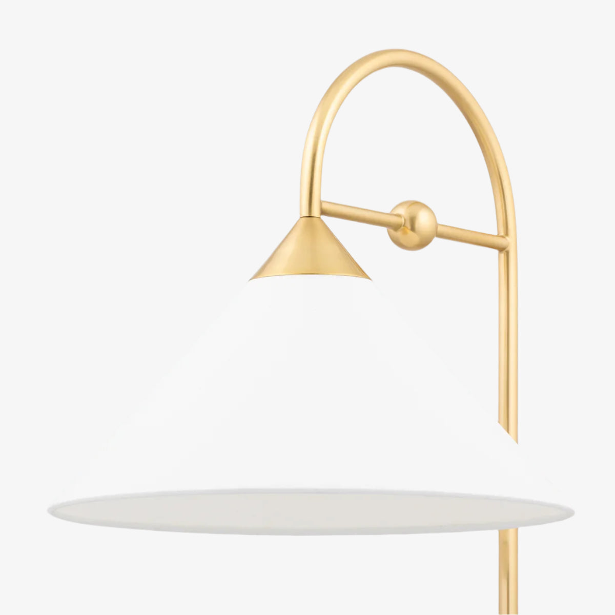 Sang Floor Lamp is the epitome of luxury lighting. Its geometric silhouette is elevated by ornamental spheres, reminiscent of elegant jewelry. The Aged Brass finish and white linen shade add a touch of sophistication. Perfect for those who appreciate fine design and impeccable craftsmanship.