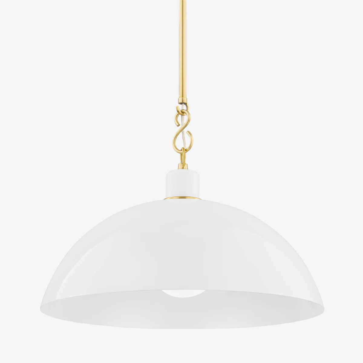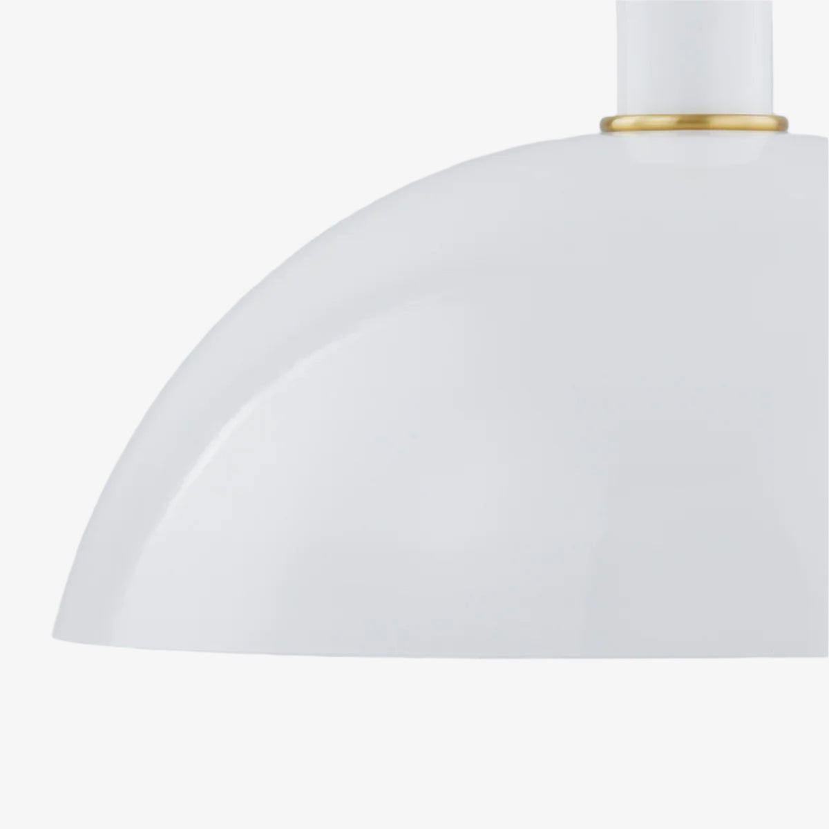 The Camille wall sconce and pendant draws her best features from French design. Aged brass details pop against the glossy black or white dome outfitted with a white interior. From an industrial form to Mid-century styling, Camille may be vintage inspired but was certainly made for modern homes.