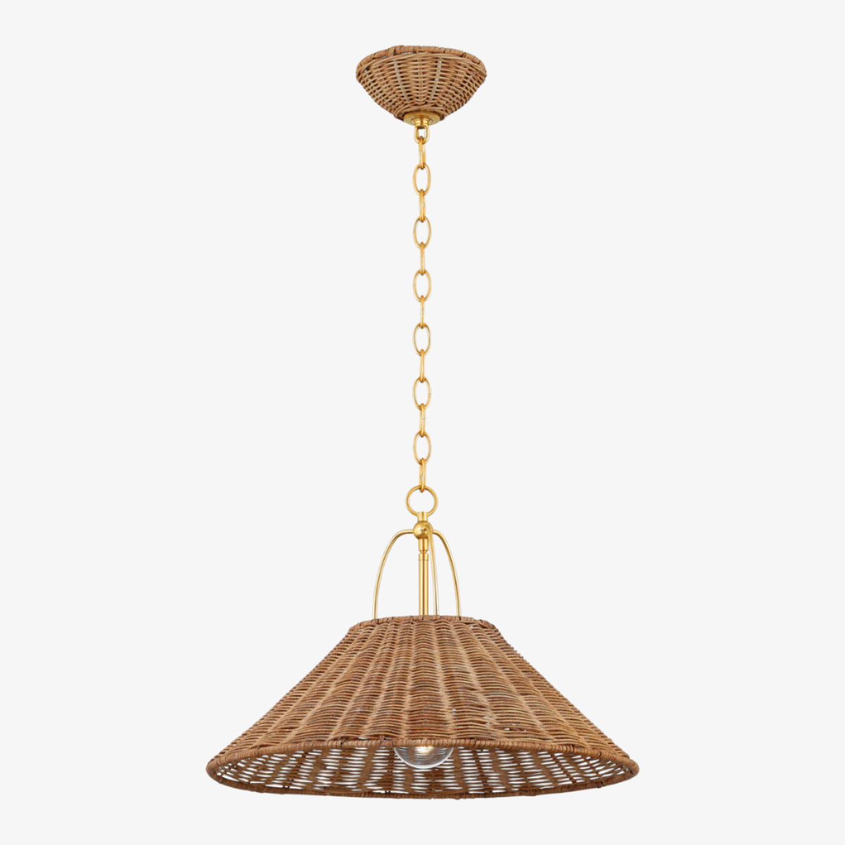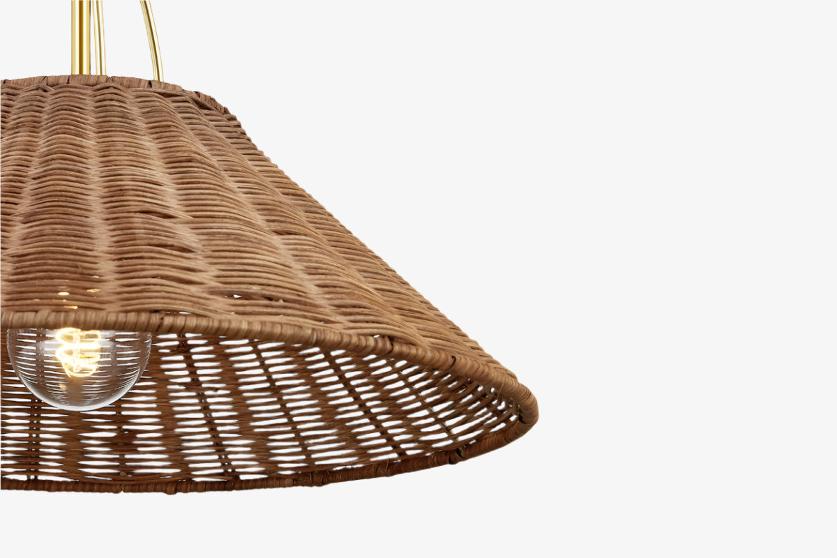 The Davida pendant takes a heritage silhouette and gives it an update with contemporary materiality. Woven from Natural Rattan, the shade and canopy bring an earthy, yet sophisticated feel to a space. The unique metalwork details are finished in a timeless Aged Brass finish.