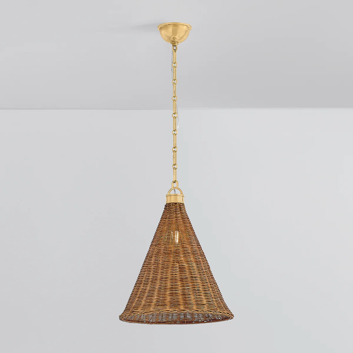 Kensington reimagines natural beauty of walnut wicker. The heritage feel of these fixtures stems from their artisanal craftsmanship, Aged Brass accents, and classic design details like a slender gooseneck arm. An instant classic, Kensington is sure to bring texture and beauty to any room.
