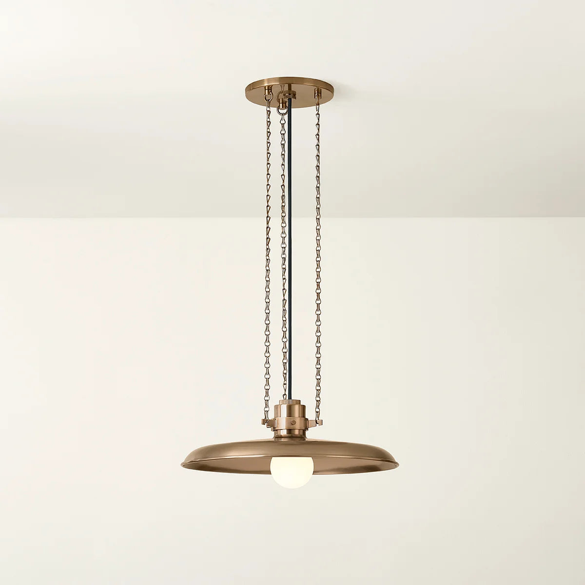 Drawing loose inspiration from classic silhouettes of the past, Rainhill brings retro charm to contemporary spaces. The focal point of the fixture is the large metal shade, which is designed to reflect light downward and outward, creating a warm and inviting atmosphere. Rainhill is finished in Patina Brass, adding to its vintage feeling.