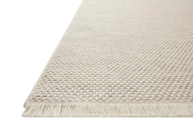The Malibu Al Ivory | Dove is an indoor/outdoor area rug that channels the casual modern vibe of the beach city it's named after. The rug's neutral-toned geometric print is easy to match with a range of decor styles, while a hint of fringe adds to the breezy aesthetic. This collection is power-loomed of 100% polypropylene that's made to resemble natural fibers, but which can withstand the outdoor elements and indoor high-traffic areas like mudrooms, playrooms, and hallways. Spot clean, vacuum, or hose off completely as needed. Made in Egypt and OEKO-TEX certified, ensuring its materials don't contain harmful substances.