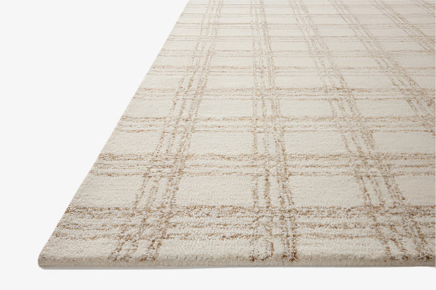 Crafted in India from a blend of wool and jute, the Polly Indoor Rug features striking gridded patterns softened by a neutral color palette. This combination offers both durability and subtle elegance, making it a versatile addition to any interior space seeking texture and refined style.