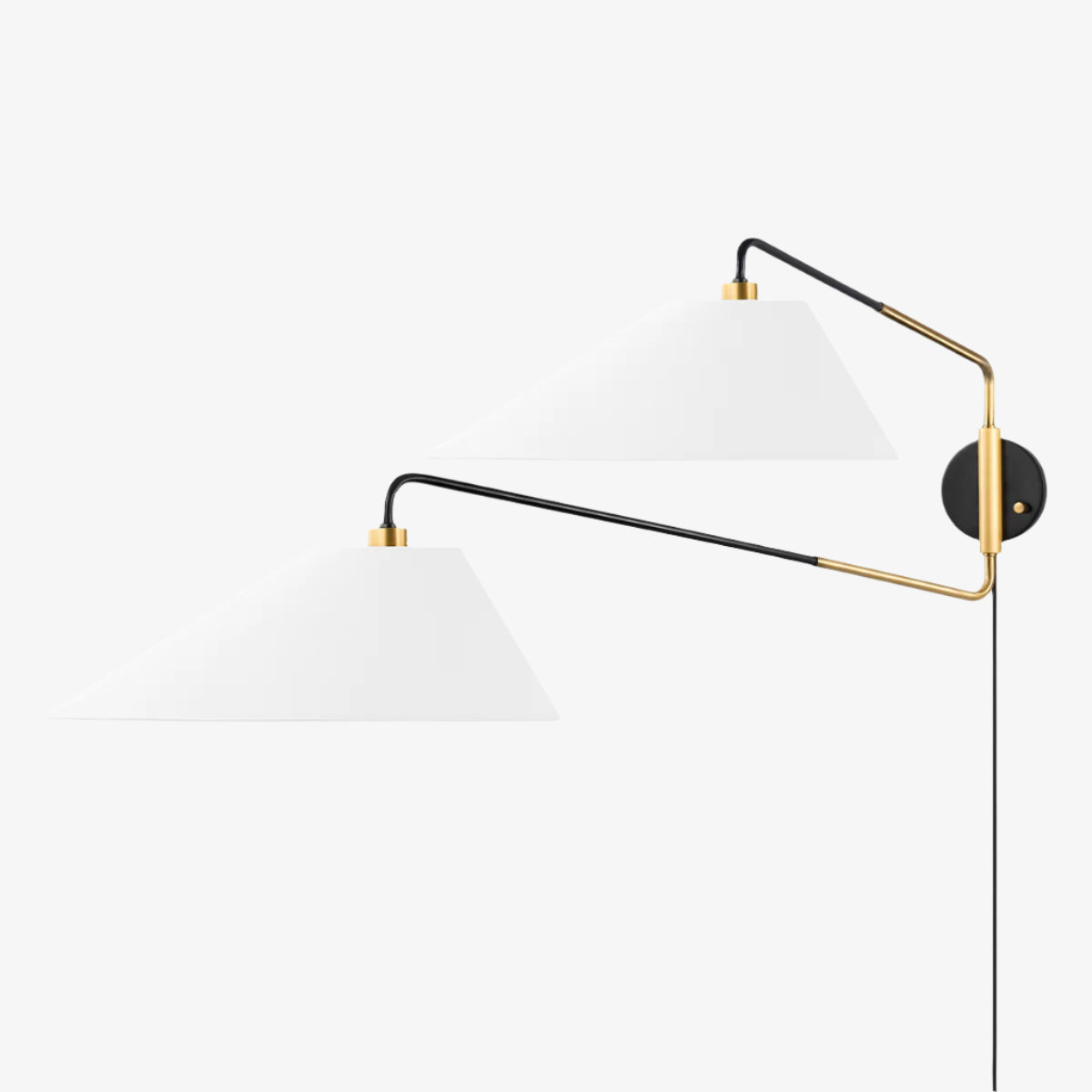 Introducing Duo Wall Sconce, the perfect blend of style and functionality. Its elongated shades in white Belgian linen diffuse a soft, warm glow, while the curved arms in aged old bronze add a touch of elegance. Its unique design allows for maximum light and visual interest. Upgrade your space with Duo.