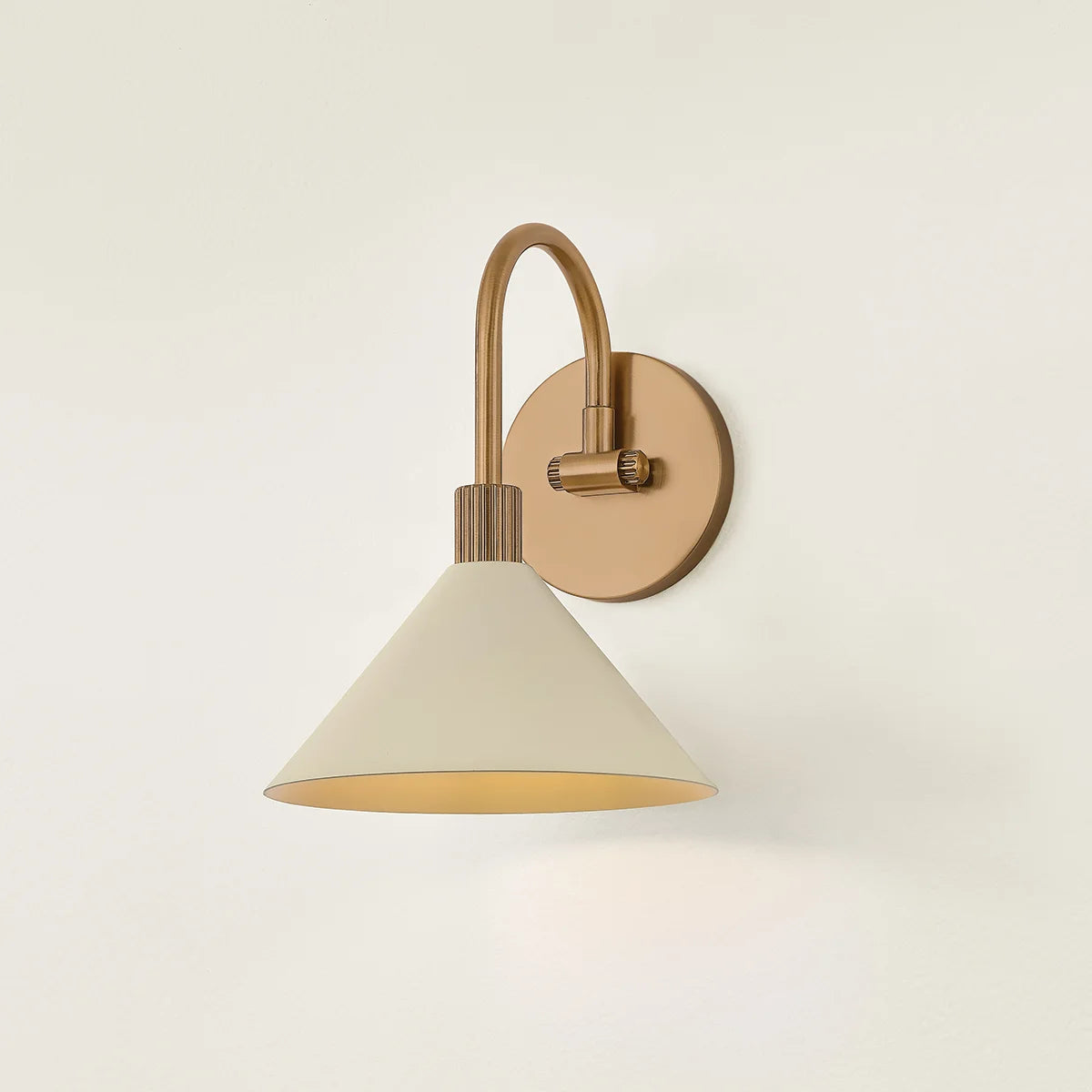 A modern interpretation of Art Deco shapes, the Jovani bath bar features elongated arms and sharply tapered Soft Sand shades. The clean design highlights the connections between elements through pronounced fittings and subtle fluting details. Finished in classic Patina Brass, Jovani is sure to bring elegance to any space.